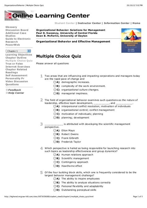 Download ORGANIZATIONAL BEHAVIOR ROBBINS MULTIPLE CHOICE QUESTIONS PDF BookBoon